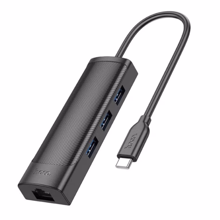 HOCO HB42 Easy Safety – Adaptateur Gigabit Ethernet 4-en-1 (Type-C vers USB 3.0×3 + RJ45) 20 cm