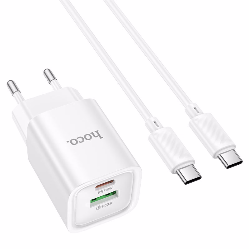 HOCO C 149A – chargeur rapide charm dual ports PD 30W+QC3.0 (C to IP)/( c to c )-version europeene