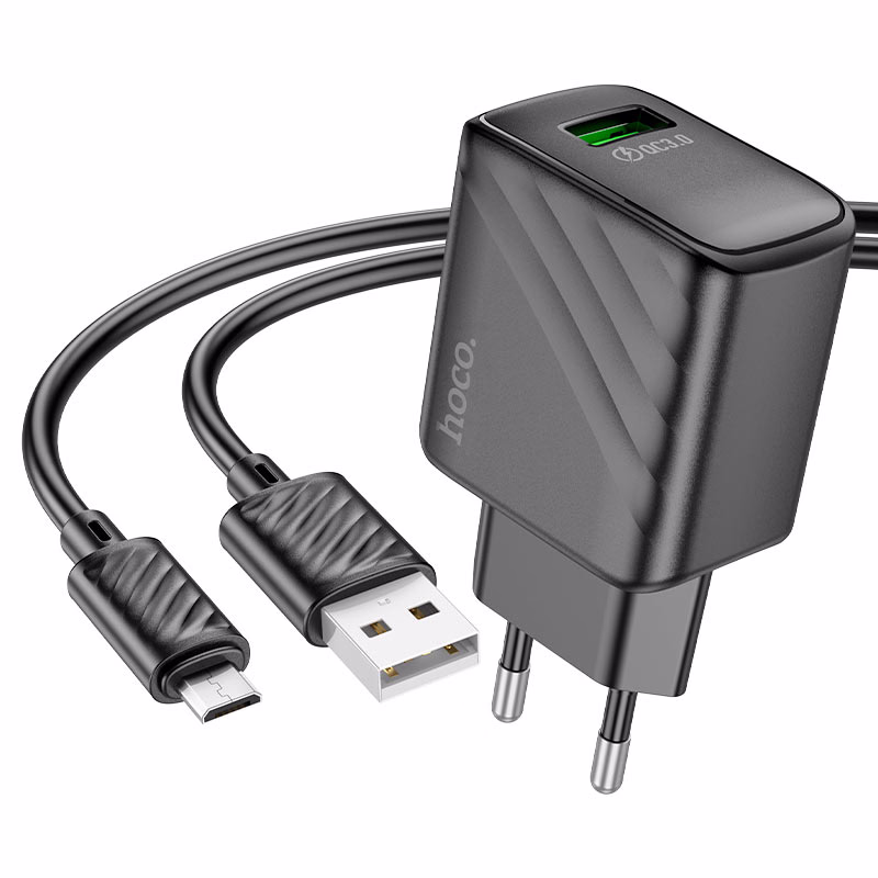 HOCO CS21A – Chargeur rapide USB to Micro Rich QC3.0 – Élégance et performance au prise européenne