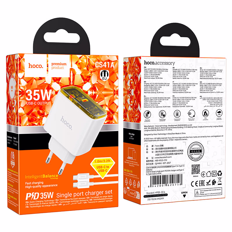Le HOCO CS41A Smart PD 35W assure une expérience de charge rapide et efficace, tout en protégeant vos appareils contre tout risque électrique.