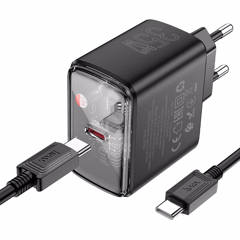 HOCO CS41A Smart – Chargeur mural PD 35W à port unique avec câble (C to C) (version EU) – Puissance intelligente, élégance compacte