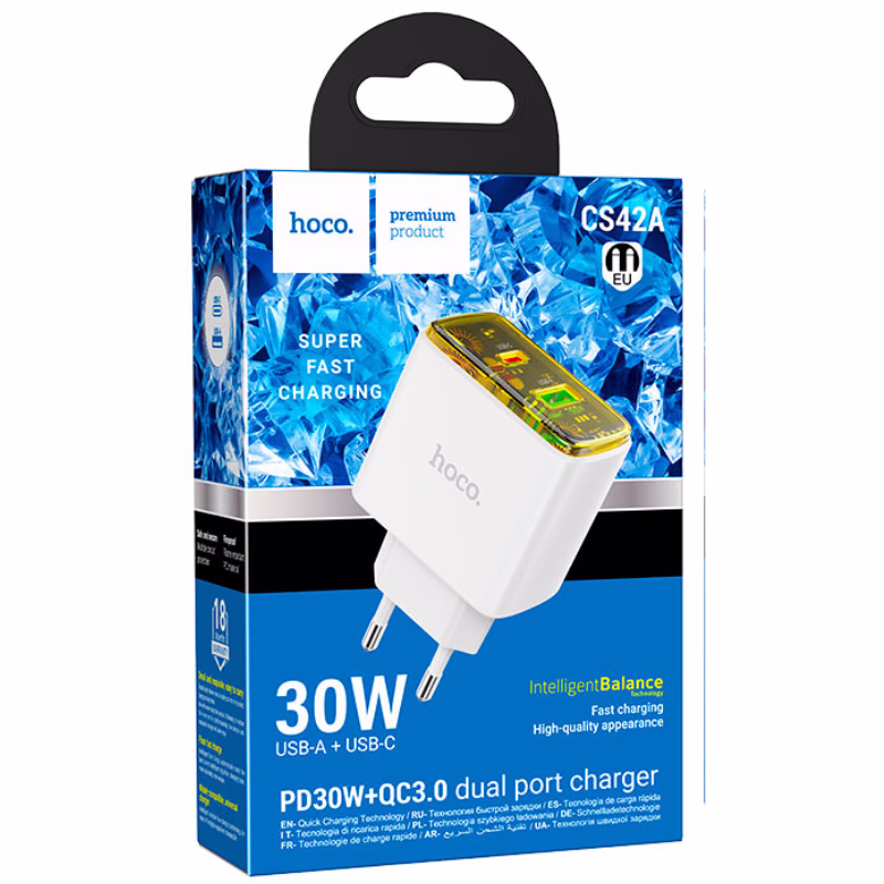 HOCO CS42A Smart – Chargeur mural double port PD 30W + QC3.0 (version EU) – Puissance rapide, design intelligent