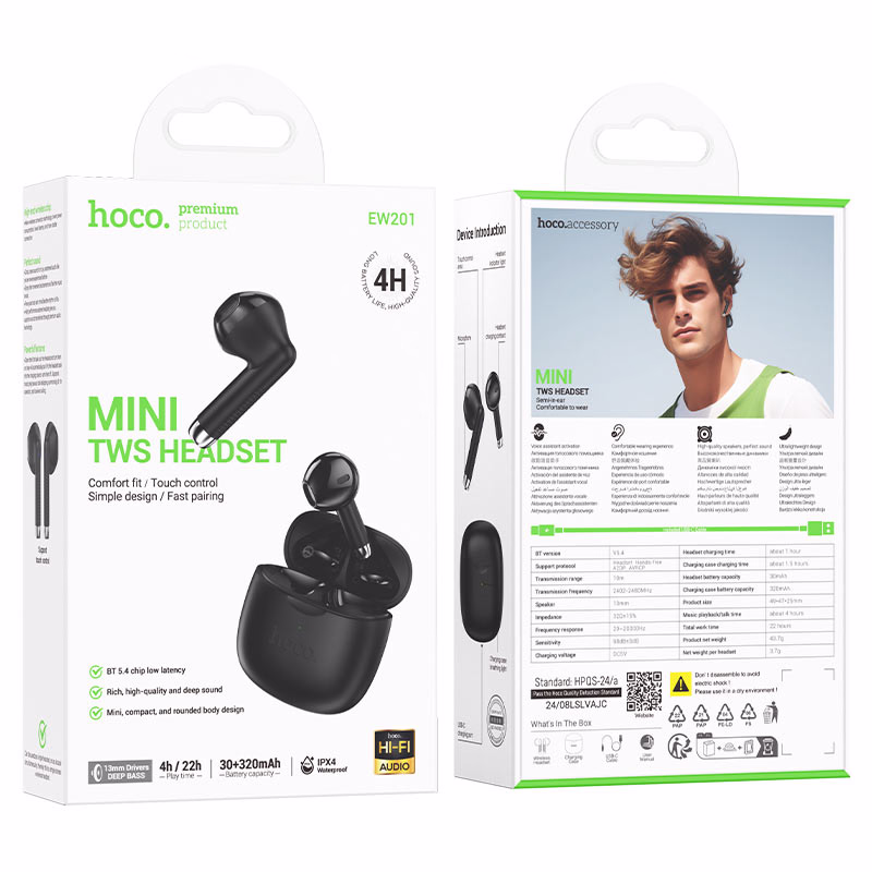 Hoco EW201 – Écouteurs sans fil Bluetooth 5.4 TWS – Élégance sonore, confort absolu