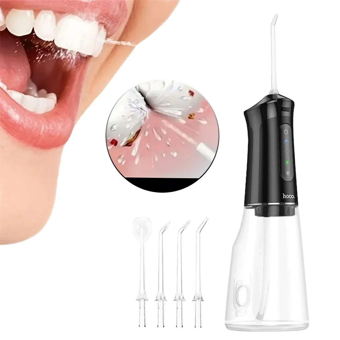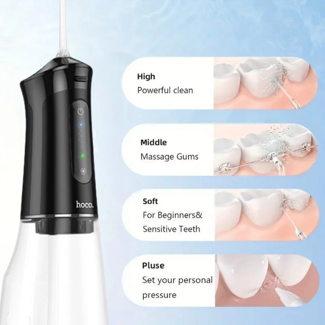 HOCO HP61 redéfinit les standards de l’hygiène bucco-dentaire à domicile, avec son design noir sobre et raffiné, il combine la puissance, l'ergonomie et la technologie moderne. Sa structure en ABS de haute qualité assure robustesse et durabilité, tandis que ses 5 embouts interchangeables offrent une expérience sur mesure, adaptée à chaque besoin, nettoyage interdentaire, gencives sensibles, porteurs d’appareils ou soins approfondis.