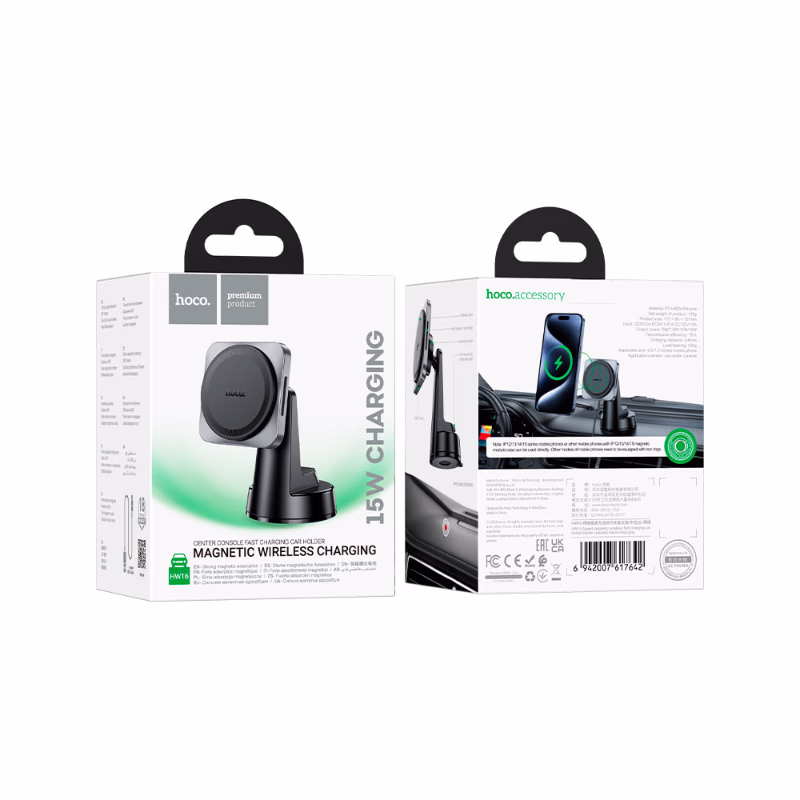 HOCO HW16 – Support de voiture magnétique sans fil à chargement rapide ​​(console centrale)