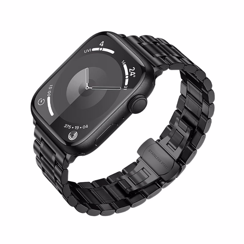 HOCO iWATCH WA32 – Grand series five-bead steel strap(42/44/45/49mm) black – Bracelet élégant pour smartwatch avec une finition de haute qualité , fermoir papillon en acier inoxydable