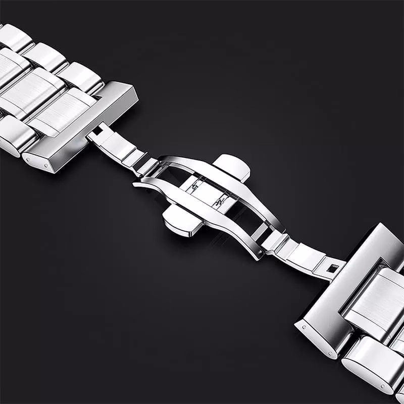 Découvrez le bracelet iWatch WA32 Grand Series en acier inoxydable, conçu pour transformer votre Apple Watch en un véritable bijou. Compatible avec les modèles Series 1 à 9, SE / SE2 et Ultra / Ultra2, il allie style luxueux et robustesse. Sa finition argentée brillante et son design cinq maillons offrent une esthétique raffinée, adaptée à toutes les occasions, du bureau aux soirées élégantes. Léger et confortable, ce bracelet sublime votre montre tout en restant pratique pour un usage quotidien en Algérie, combinant parfaitement sophistication et durabilité sur dz.