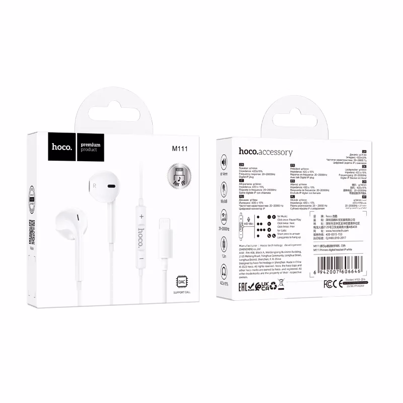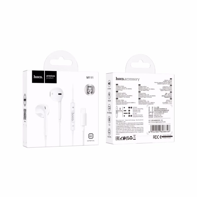 Le Hoco M111 se distingue par sa conception en ABS et TPE, des matériaux robustes et doux au toucher, assurant une résistance accrue et un confort longue durée. Équipé de haut-parleurs de 14 mm, il délivre un son riche, équilibré et immersif, idéal pour savourer chaque note de musique ou profiter de conversations nettes grâce à son microphone intégré. Sa prise Lightning assure une compatibilité parfaite avec les appareils Apple récents, garantissant une transmission audio stable et sans perte. Son câble de 1,2 mètre offre une liberté de mouvement confortable, tandis que la commande filaire permet de gérer facilement le volume et les appels. Le M111 allie ergonomie, durabilité et élégance, un choix idéal pour ceux qui recherchent un accessoire à la fois performant et stylé sur hoco.dz.