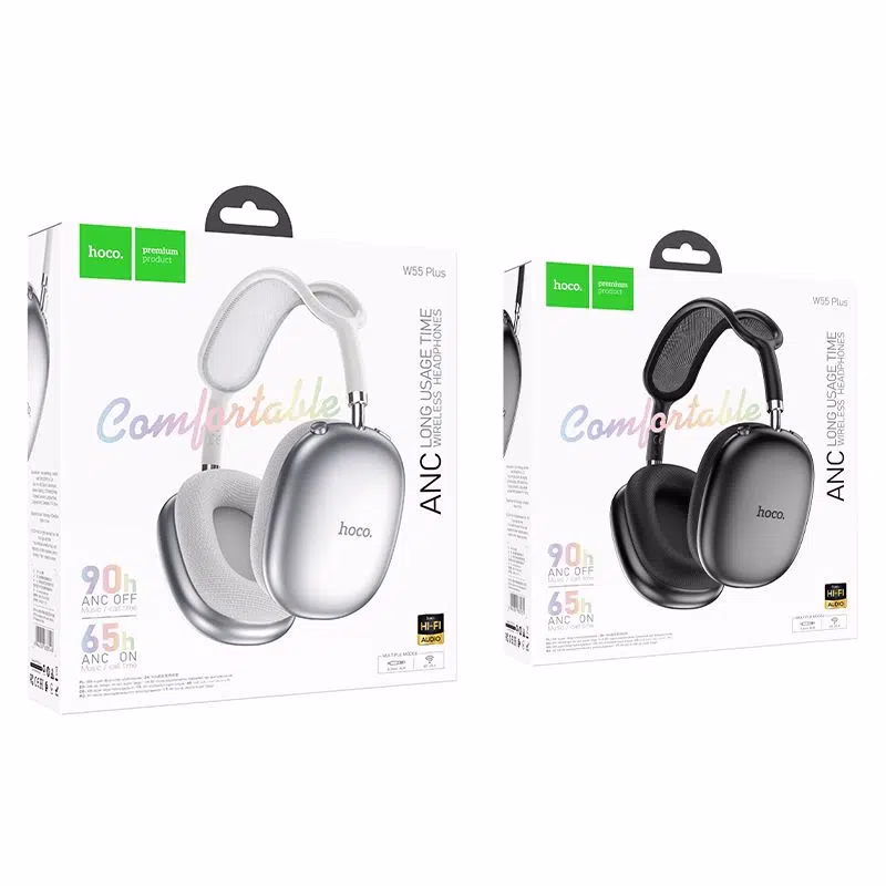 HOCO W55 Plus Happiness – Casque sans fil Bluetooth avec réduction de bruit active ANC – Performance, sérénité et élégance